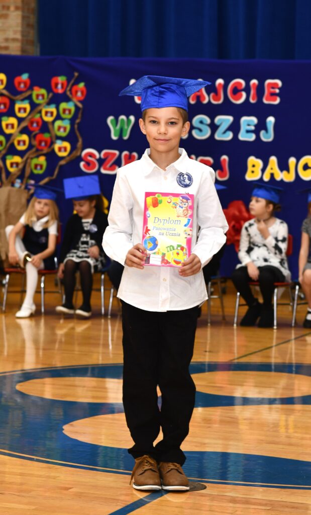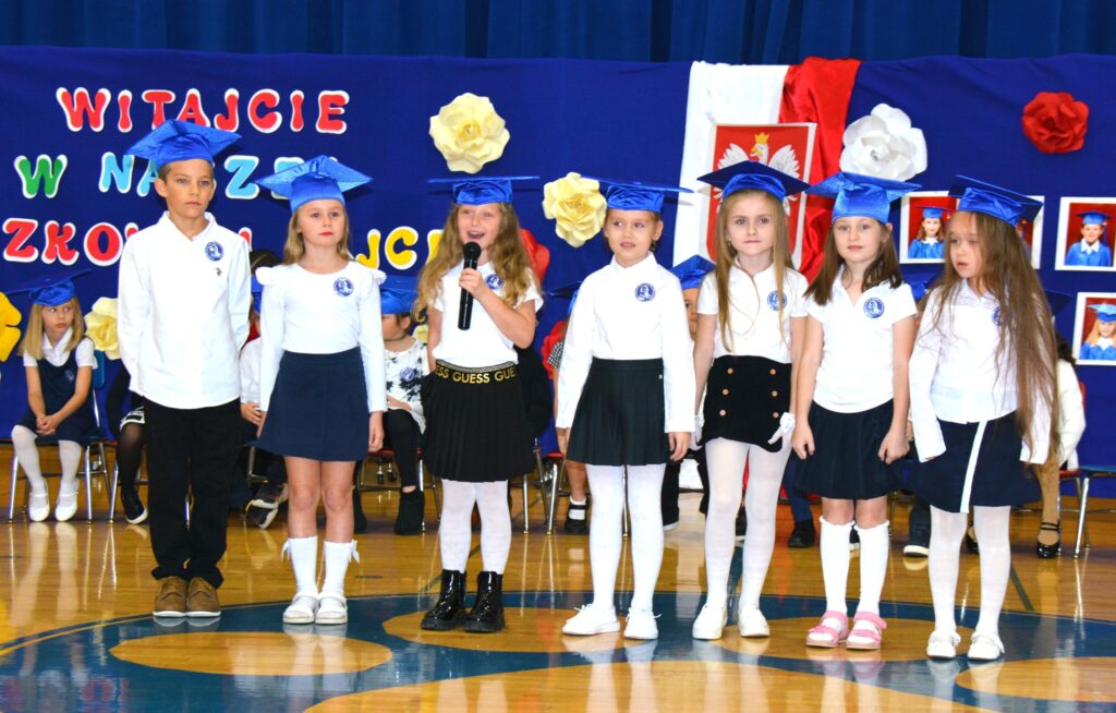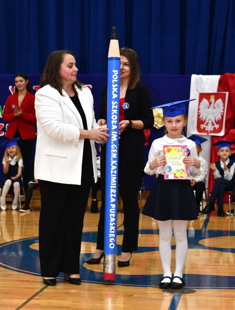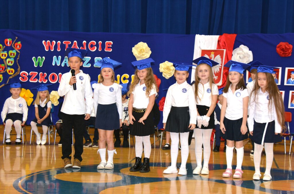 Pierwszaki, pełne emocji i dumy, zaprezentowały program artystyczny, po czym złożyły ślubowanie, przyrzekając pilnie się uczyć, być dobrymi kolegami i godnie reprezentować szkołę. Następnie dyrektor Dorota Turek dokonała pasowania symbolicznym ołówkiem, wręczając uczniom dyplomy i pamiątkowe plecaczki.